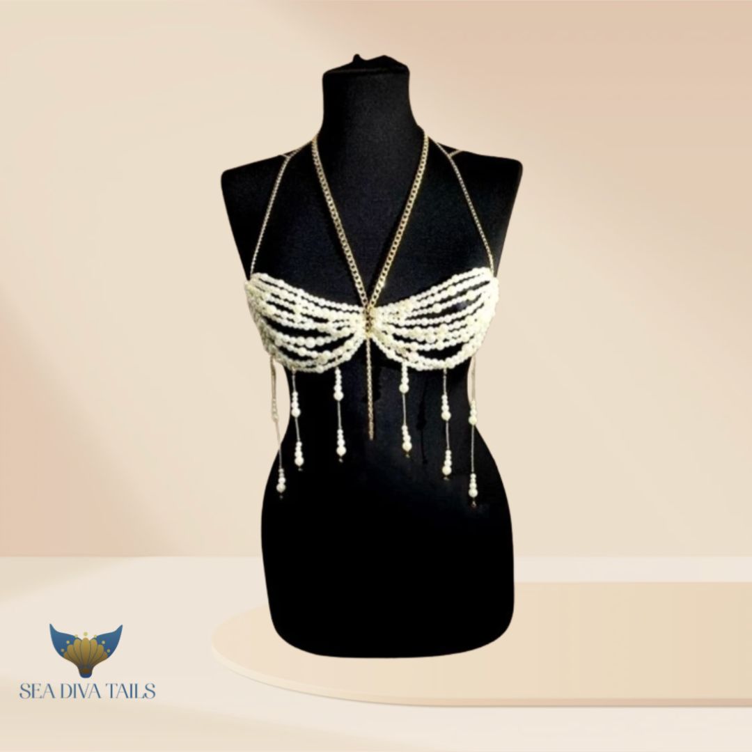 The Siren Tassel Body Chain is a bold fusion of pearls and movement, designed to capture attention with every step. Draped like a pearl bra with cascading tassel drops, this piece channels oceanic allure while adding a playful yet elegant edge. Perfect for stage performances, festivals, or statement styling, it embodies the free-spirited charm of a modern siren.