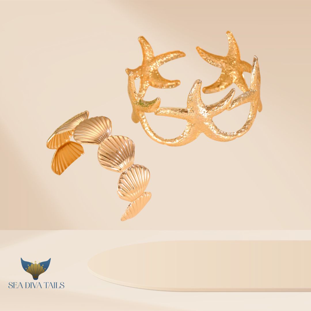 A sea-themed bracelet with charming starfish and shell details. Made from high-quality metal-coated alloy, it is rust-resistant, lightweight, and comfortable to wear. The adjustable design makes this bracelet easy to fit various wrist sizes.