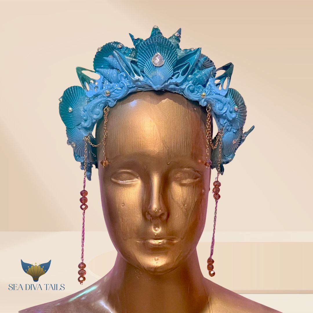 A mermaid needs a custom-made mermaid crown to express her unique personality and style. Mermaid crowns are the perfect way for mermaids to stand out from the crowd and make a statement. And we can create one for you! Our Mermaid crown is handmade, crafted from the finest materials, your incredible crown is going to be made with love and care. It's customize with your head size, and you can choose from a variety of colors, glitter, and other accents that will make your crown unique and reflect your mersona.