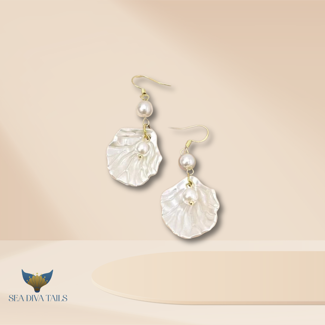 Softly sparkling white pearl shell earrings, like moon foam on the waves at night. Timelessly graceful, elegant, and classic. Perfect for sophisticated feminine styles, romantic dinners, and classy evening parties. The design is light and timeless, easy to mix and match with any outfit.