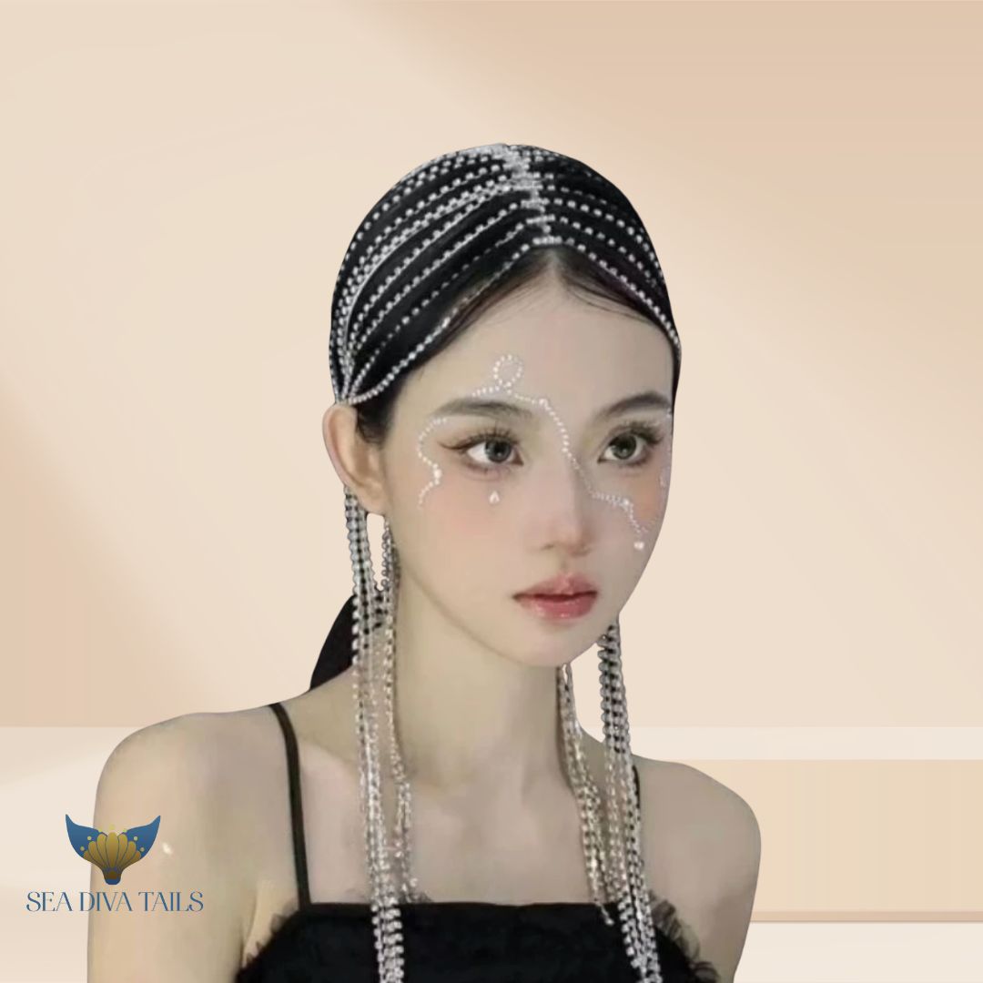 Radiate celestial glamour with the Starlight Veil. Featuring cascading rhinestone strands that shimmer with every movement, this headpiece transforms any outfit into a show-stopping look. Perfect for dancers, Halloween costumes, or dazzling performances.