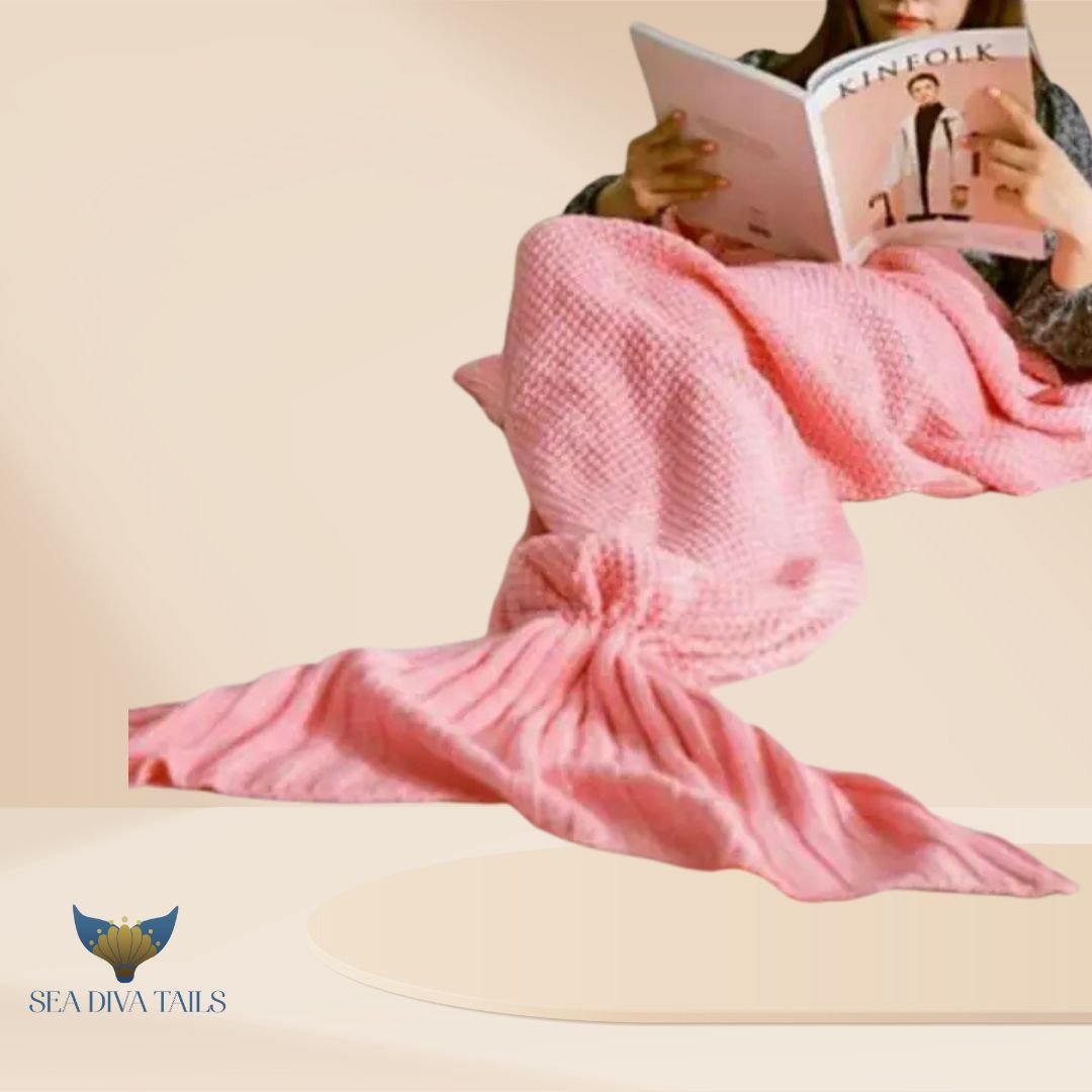 Experience the sensation of being a mermaid with this Adult Mermaid Blanket! Made from soft and warm knitted fabric, this unique blanket is designed to resemble a mermaid tail, making your relaxation time more exciting and comfortable.
